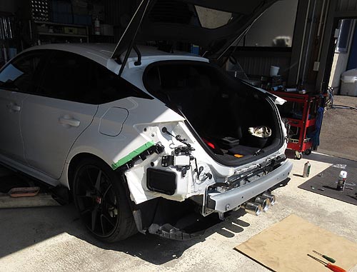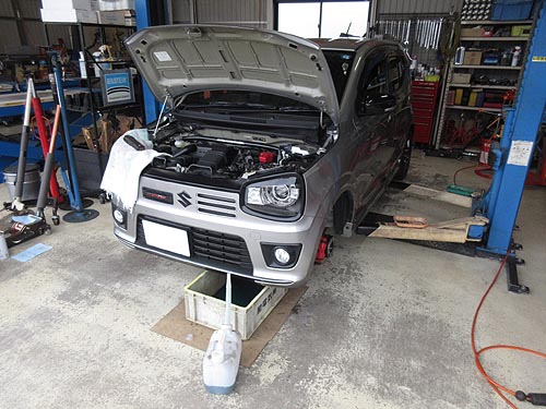 | フロントの脱着が比較的困難なクルマですが 当社では慣れています。 |
