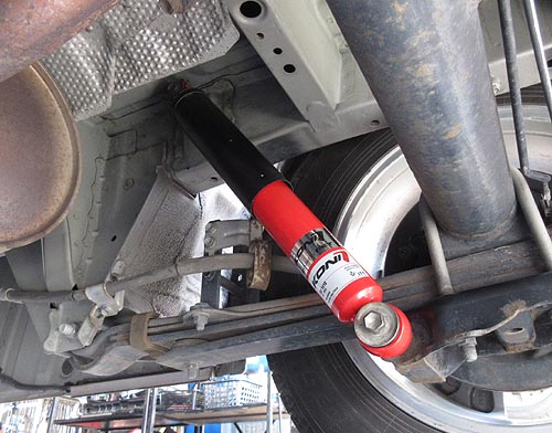 | もちろんそのままは付けられませんので、 プレスを使って、ブッシュのスリーブカラーを抜いたり、 スリーブを切って作成したり、クロスピンを圧入したり プレス慣れしている当社ならでは、色々加工して装着しました。 こちらはフロントです。 |