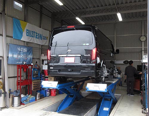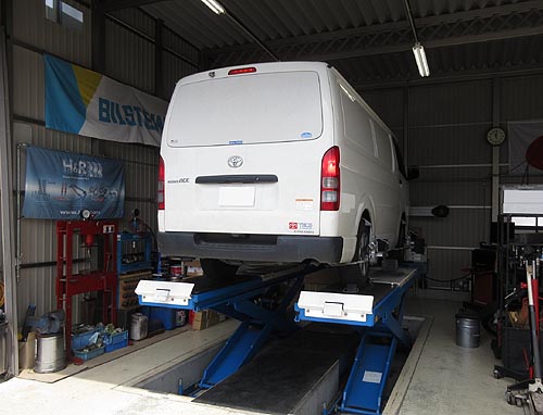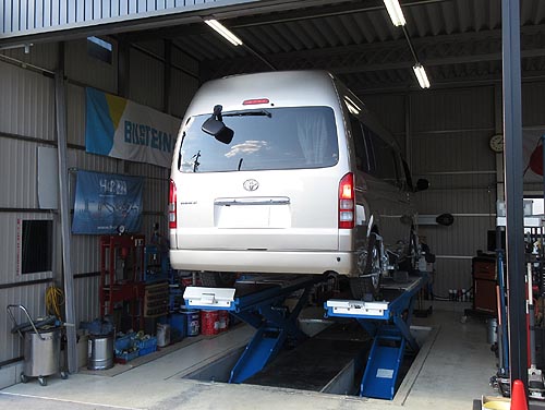 | トヨタ ハイエース KDH206 をアライメント調整 クルマが左に流れてしまうとの事でした。 きっちり修正して完了しました。 |
