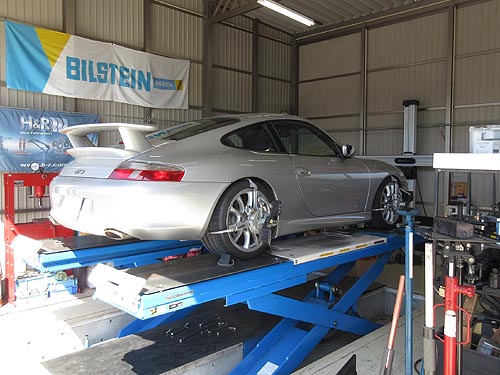 | 丸一日車重をかけて放置してから、 翌日にリアの車高を微調整して アライメントをチェックしました。 |
