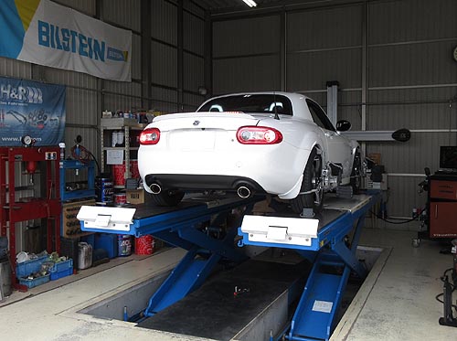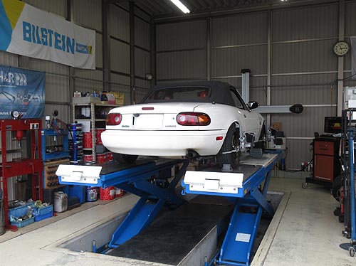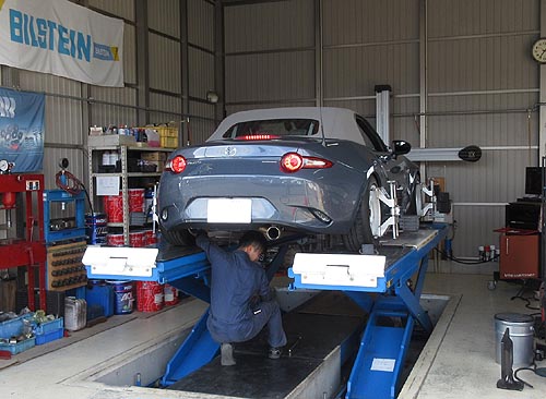 | マツダ ロードスター NCEC 車高調サスの車高調整とアライメント調整を行ないました。 |