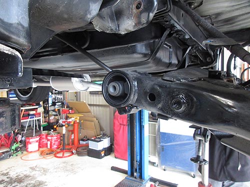 | ハブベアリングの交換にかなりの時間を費やして 画像を撮る余裕も無く、 こちらは手馴れたロアアームブッシュを交換しているところ |