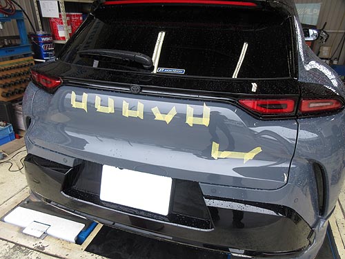 | トヨタ ハリアー ハイブリッド AXUH85 新車 に 22インチのホイヤホイールを装着して、アライメントを調整しました。 |