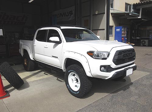 | トヨタ ハイラックス GUN125 をアライメント調整 業者様よりのご依頼 ジャオスのサスキットを付けられて 車高の調整とアライメント調整をいたしました。 ジャオスの車高調はネジ式だけど、脱着しないと 車高が変えられないから手間がかかります。 |