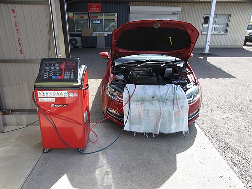 | 2026.4.19 VW ポロ 6RC に エアコンガスリフレッシュを施工しました。 エアコンガス基準充填量 500gですが 回収は 320gでした。やはり減っていますね。 |