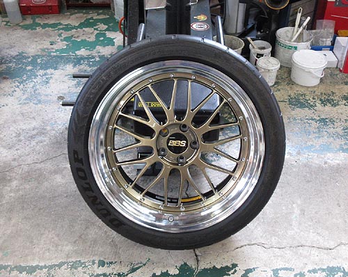 | ニッサン GT-R R35用 BBS LM 20インチにダンロップランフラットタイヤの 組込みバランスを行ないました。 相変わらず、かなり困難な作業です。 |