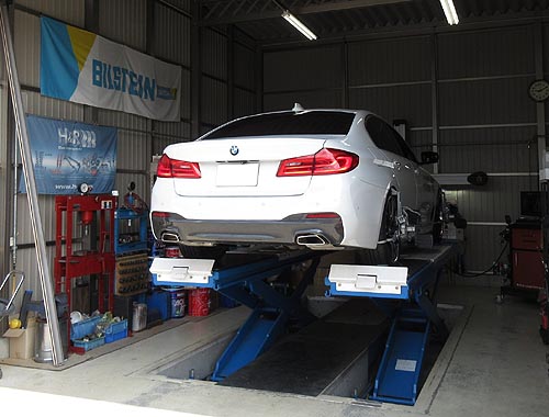 | 2026.4.26 BMW 5シリーズ G30 に ダウンサスを組まれての 1G締め直しと アライメント調整をいたしました。 |
