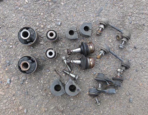 | 外したブッシュ達です。 かなりのダメージを受けていました。 11万キロお疲れ様でした。 |