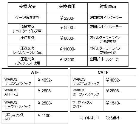 例えば、軽自動車AT車で 圧送交換として、プロフィックスATFを 5L