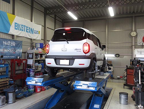 | スズキ クロスビー MND1S をアライメント調整 業者様よりのご依頼 リフトアツプされての点検調整でした。 ラテラルの調整とキャンバーボルトも追加しました。 |