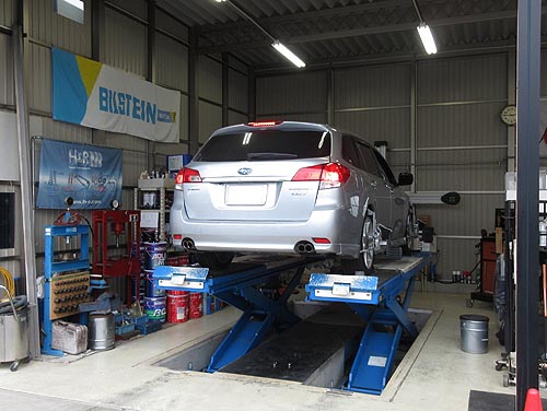| スバル レガシィ BRG をアライメント調整 2年くらい前にサス関係を一式交換させていただき 定期点検としてアライメント調整をいたしました。 |