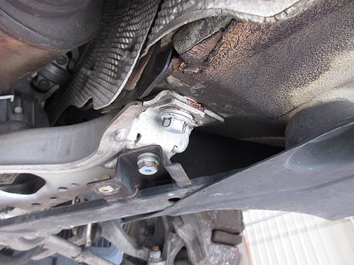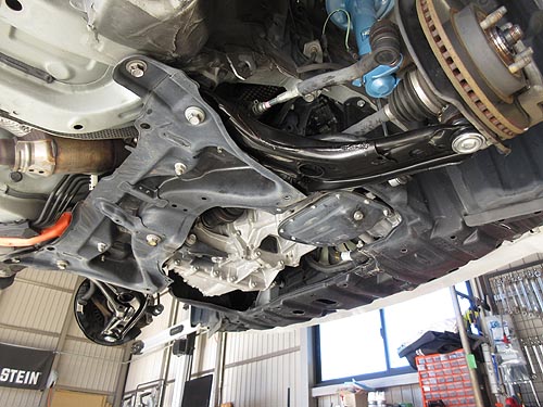 | BMWのフロントメンバーは、一般のクルマと違って クロスメンバーが斜めに止められているので リジカラを挿入するのは、なかなか難しいです。 |