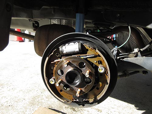 | リアドラムブレーキの清掃も依頼されました。 ハイブリッド特有のカックンブレーキが軽減するとか。 |