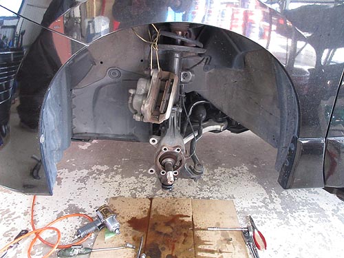 | 細いボルトは簡単に折れてくれる。 何箇所ナットを切断したことか。 タイロッドエンドのナットは固着していて、 真っ赤になるまで暖めて緩めました。 |