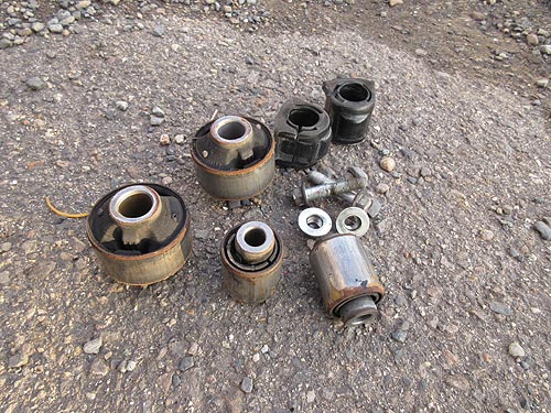 | 外したノーマルリアブッシュ達です。 24万キロお疲れ様でした。 |