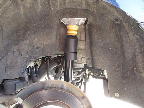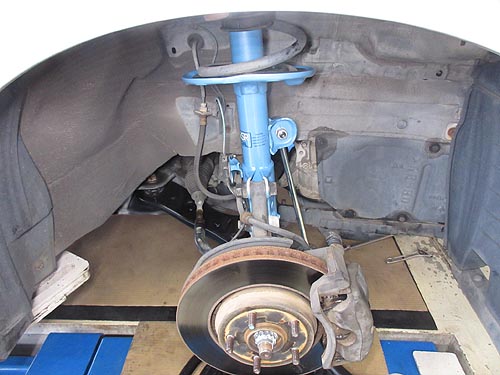 | HKS製のショックからの交換でした。 フロントショックを交換するには ちょっとしたテクニックが必要です。 |