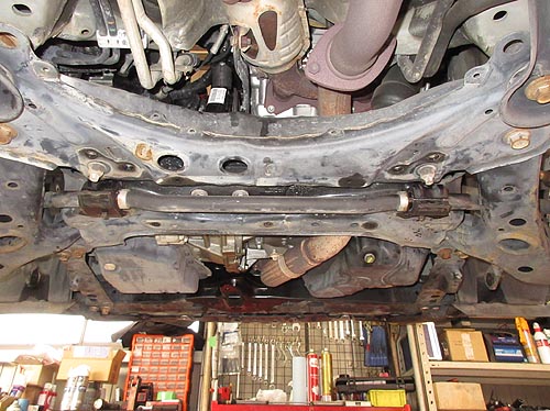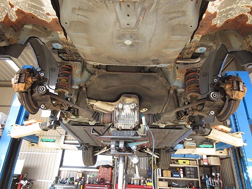 | マフラーを外して、デフを下げて リアクロスメンバーを外したところです。 |