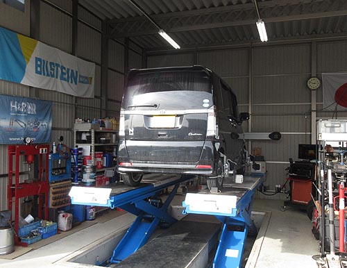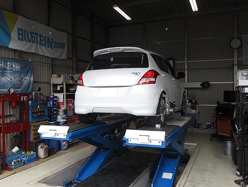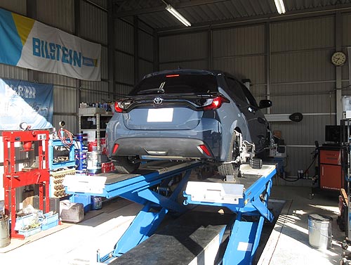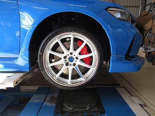 | 1G締め付けは、車高が低い分手間がかかります。 当社には、アライメント用のリフトが有るから良いものの 無かったら厳しい作業ですね。 |