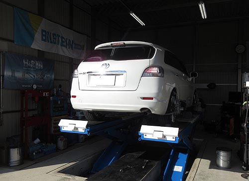 | トヨタ マークX ジオ AXA10 をアライメント調整 業者様よりのご依頼 なんでも真っ直ぐ走らないとの事でした。 各部を修正して直しました。 |