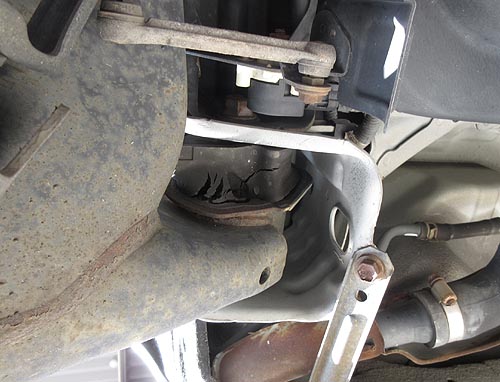 | リアアクスルブッシュも交換します。 交換前の状態です。 まあまあひどいです。ヒビヒビですね。 |