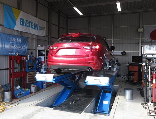 | 同時進行にて マツダ アクセラスポーツ BM5FSに ナイトスポーツ製 車高調サスキットを装着しました。 |