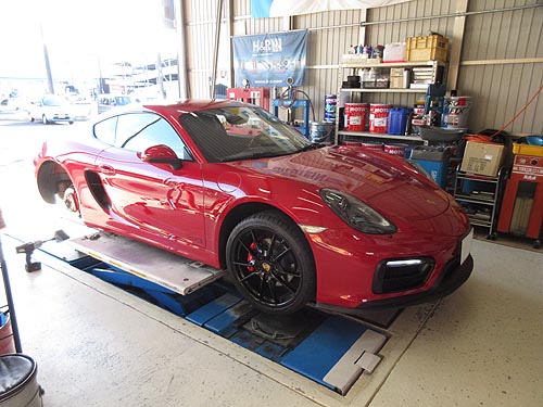 | ポルシェ 981 ケイマン GTS に 持ち込み ミシュランタイヤの交換を行ないました。 |