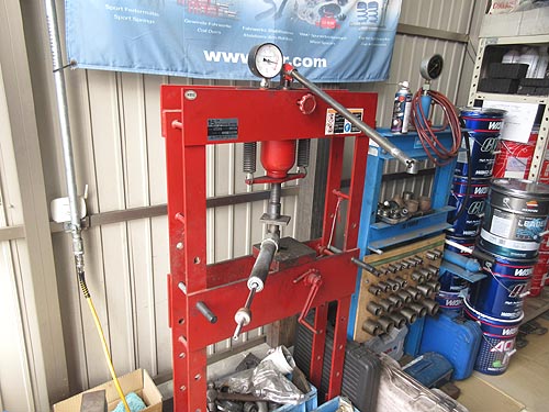 | ショックを外して、ブッシュをプレスで交換しました。 RS-Rの車高調で、良くある故障例ですが、 ブッシュ交換をしてくれない店舗が多いと聞きます。 当社なら手馴れているので簡単にお引き受けします。 |